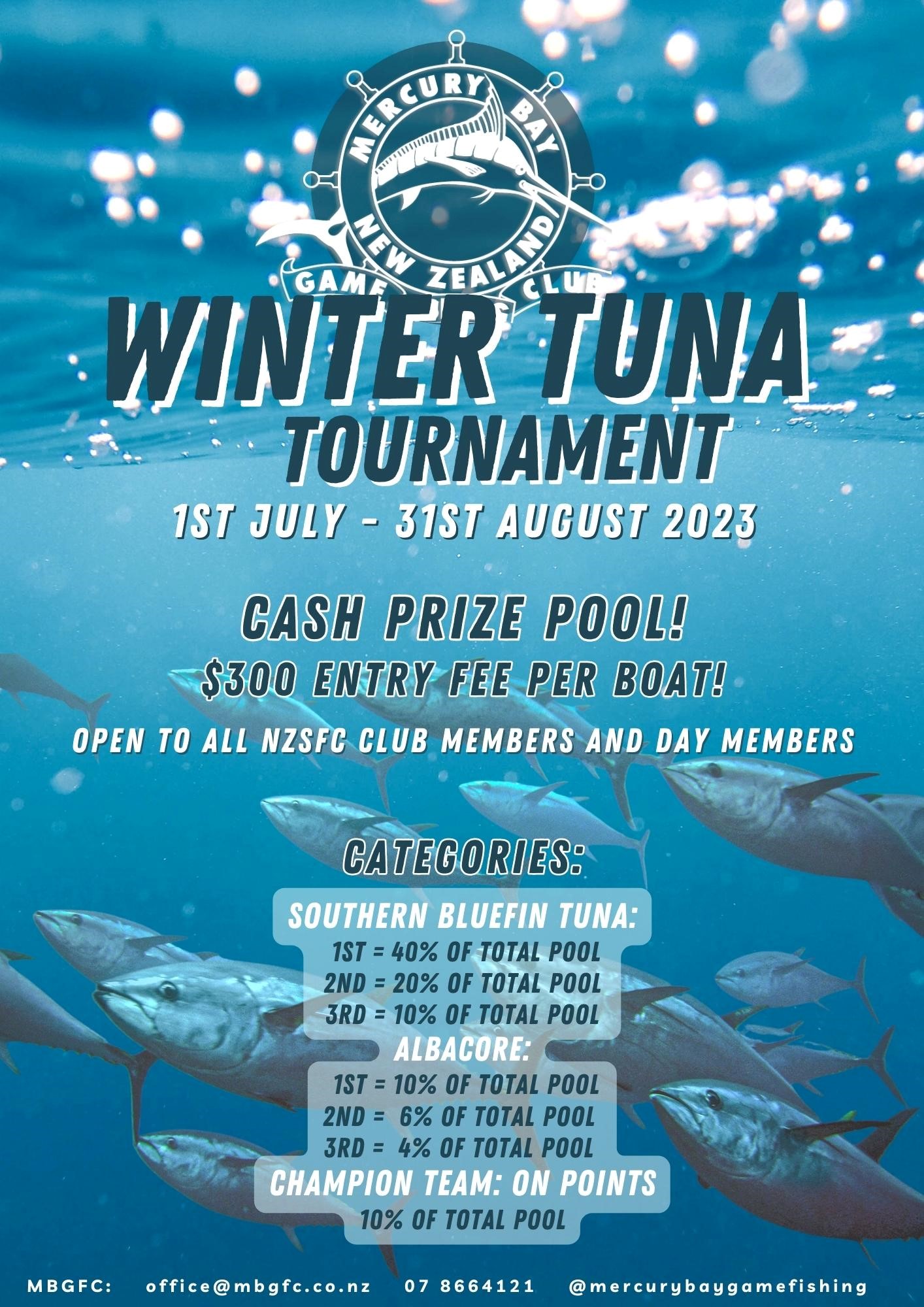 The southern bluefin tuna are expected to round East Cape in the coming weeks and our Winter Tuna Tournament will hopefully be well timed to catch a few of these beauties as they travel through our fishing area.